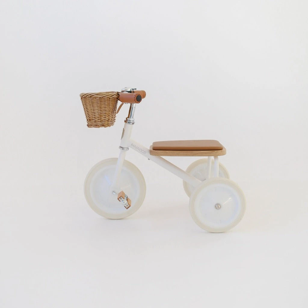 This white toddler tricycle is minimalistic and timeless and fits the youngest family member perfectly. An outdoor adventure with the smallest one on a kids trike awaits!