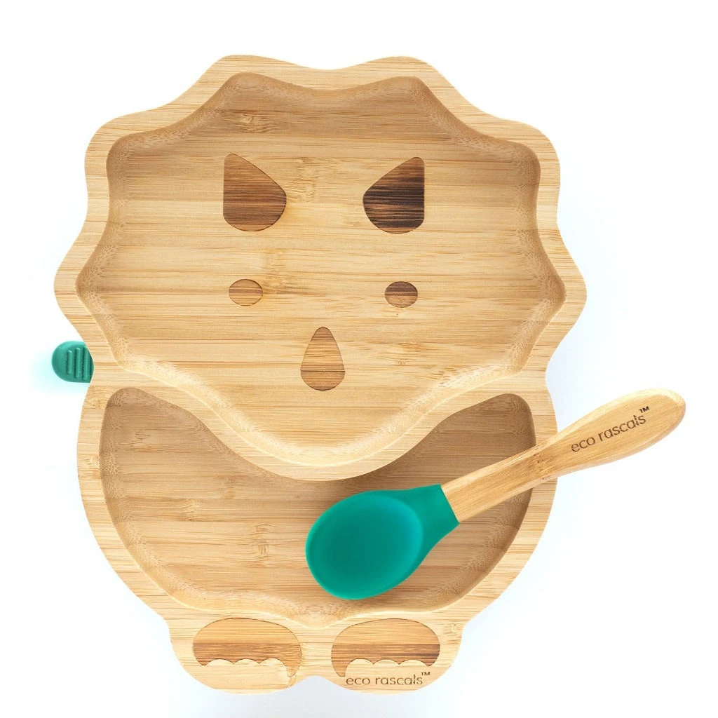 Dinosaurs love to stomp but this guy won’t be stomping anywhere. His amazing silicone ring which comes in three exclusive dinosaur colours means this plate will be staying firmly put.