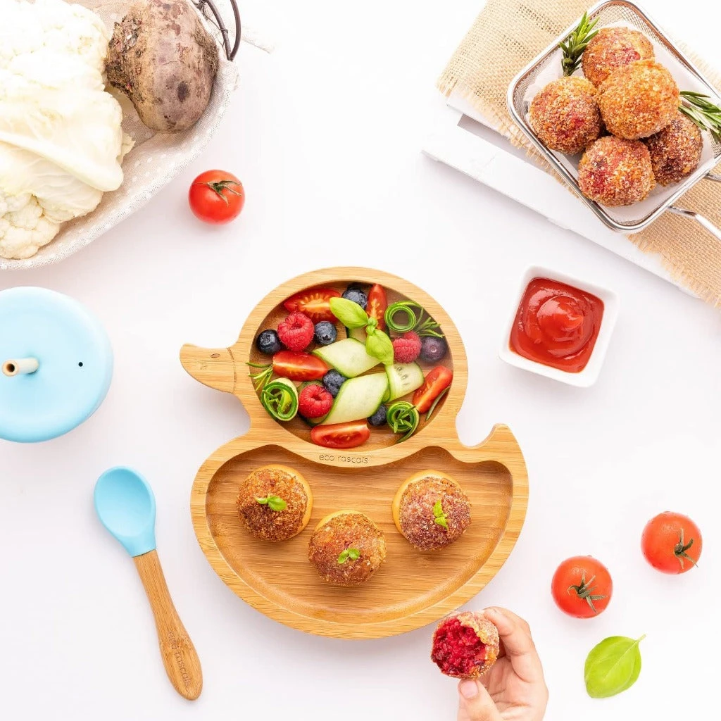 The duck plate comes with two large sections allowing you to portion out the food easily and separating tastes and textures that might be scary for a toddler.