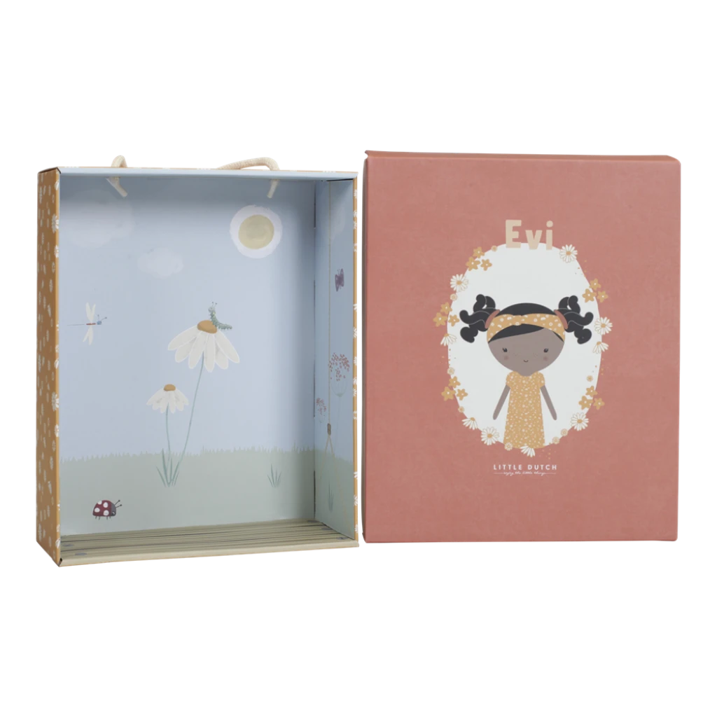 The Little Dutch Dolls are cuddly & cute. Meet lovely Evi. This plush cuddle doll from Little Dutch in a cute dress wants to be cuddled. Evi can sit up and likes to go with you in the Little Dutch wooden doll stroller.