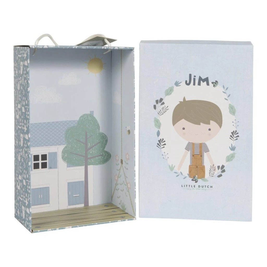 The Little Dutch Dolls are cuddly & cute. Meet Jim, the cute plush cuddle doll in his cool dungarees is soft and lovely to cuddle with. Jim can sit up and likes to go out on all the adventures with you, including sitting in the wooden stroller.