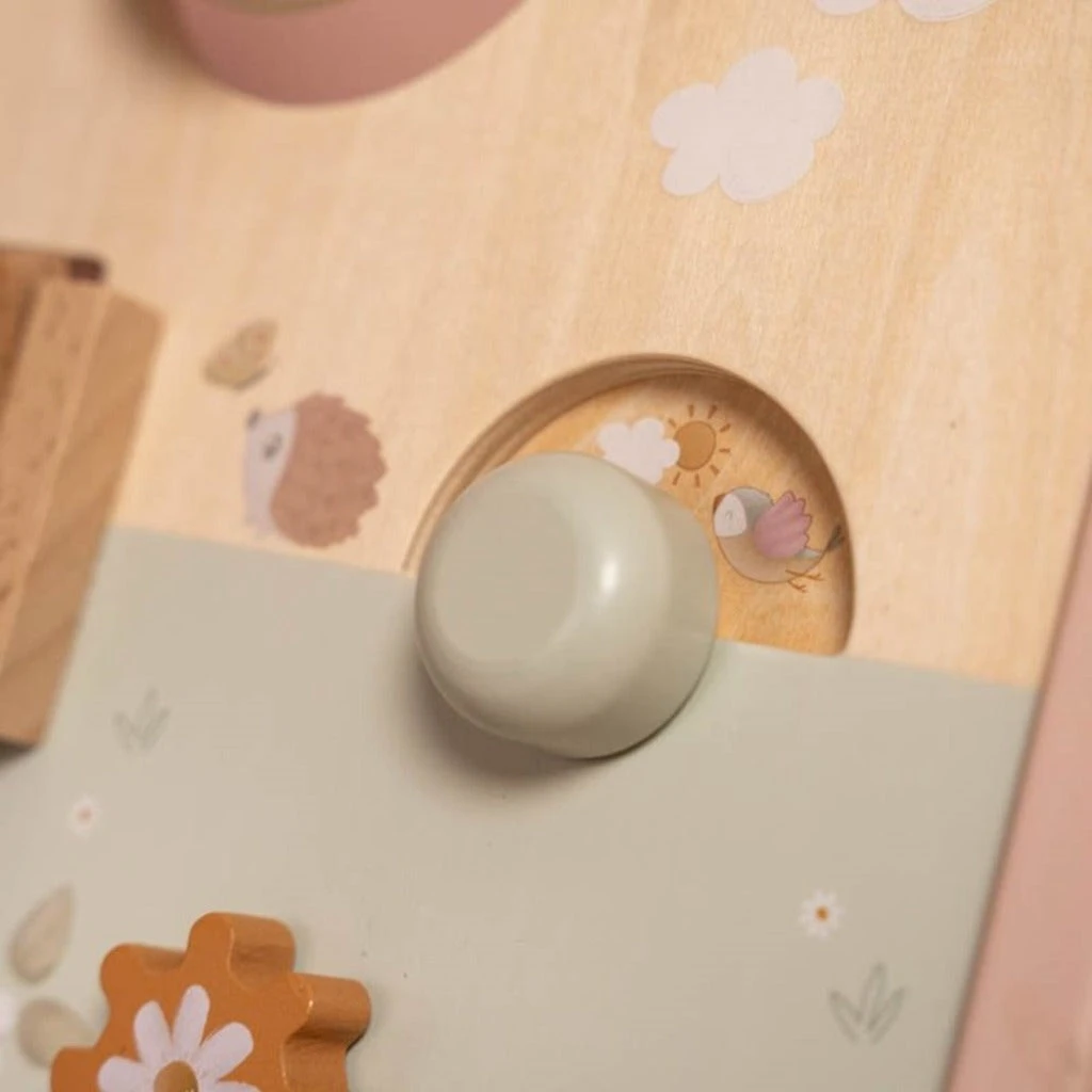 Walk, play and learn! You will have so much fun exploring all the activities of this Flowers & Butterflies baby walker. Turn the gears to make the bird go round and round! Give the mirror a spin! Is it you or Abby the little sparrow you see? Open the bird house’s door to help Olivia feed her baby bird, or learn numbers with the caterpillar guiding you through 1 to 4! So many engaging activities to choose from.