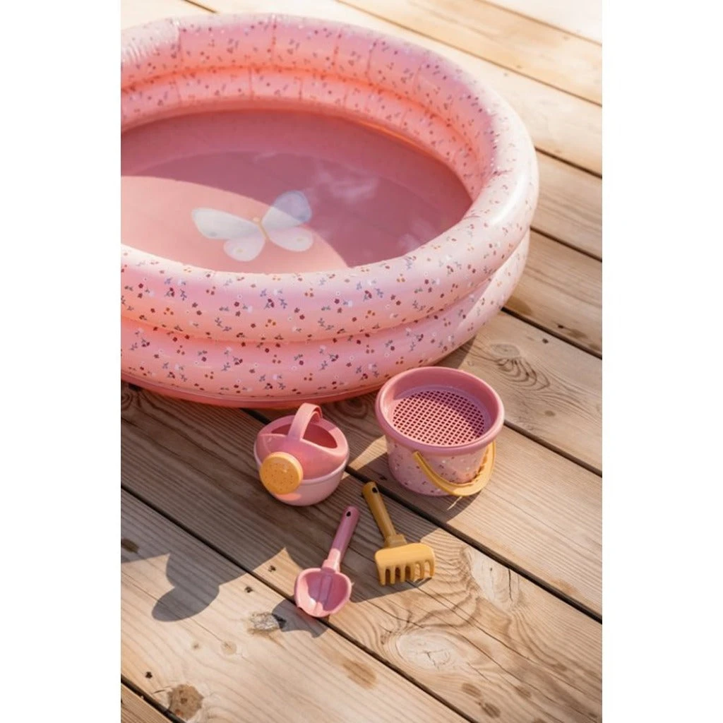This pink swimming pool has the distinctive print of the Little Pink Flowers collection on its edge and, if you look through the water, you can see a large illustration of a butterfly on the pool floor. The pool has a diameter of 80 cm.