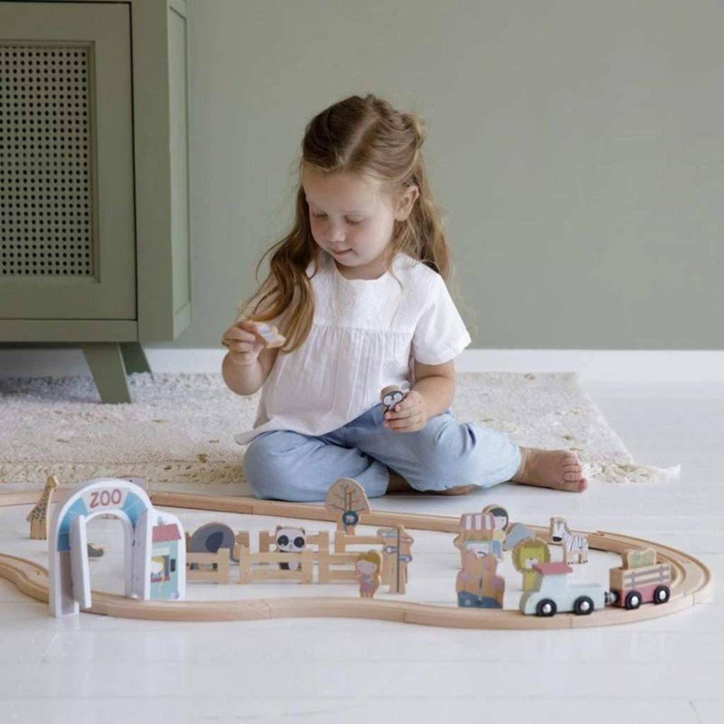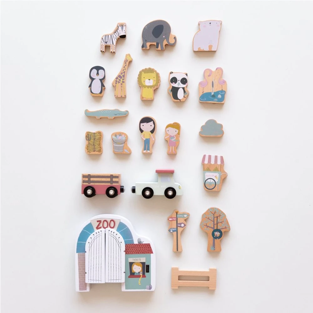 These wooden animals and zoo items are a perfect addition to the railway train. Make the final destination of the train a day of fun in the zoo!