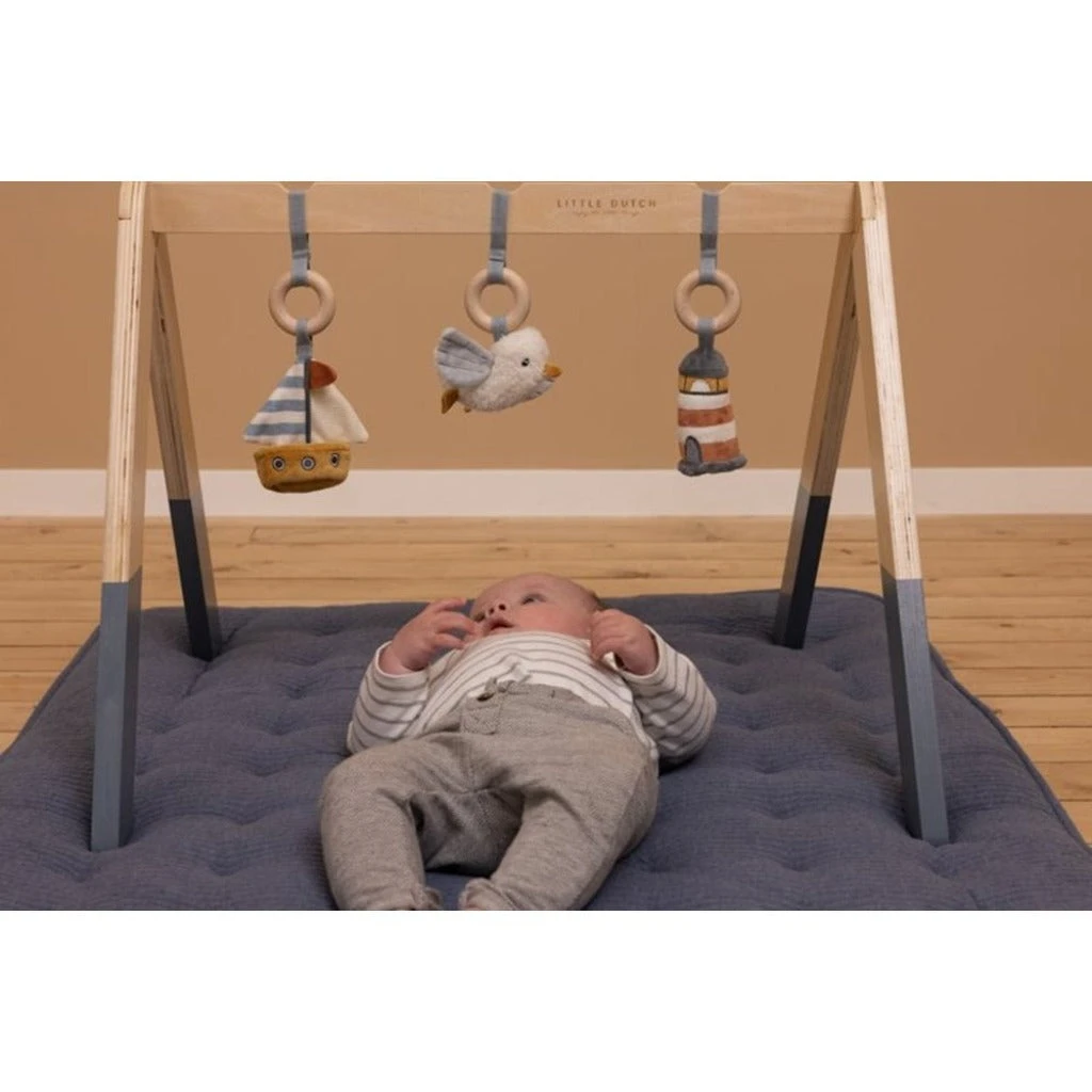 It features three different bay-themed activity toys that will do all the entertaining, including a cheery seagull, a little sailboat and a colourful lighthouse.