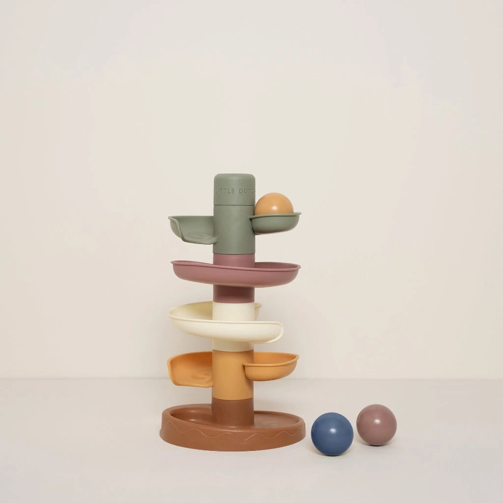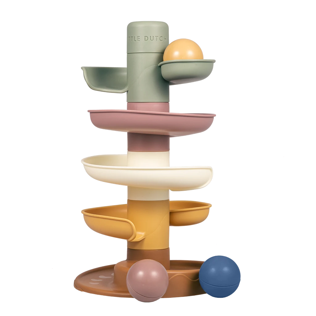 The Spiral Tower comes with three big easy-to-grip balls in different colours that make a little sound when moving.