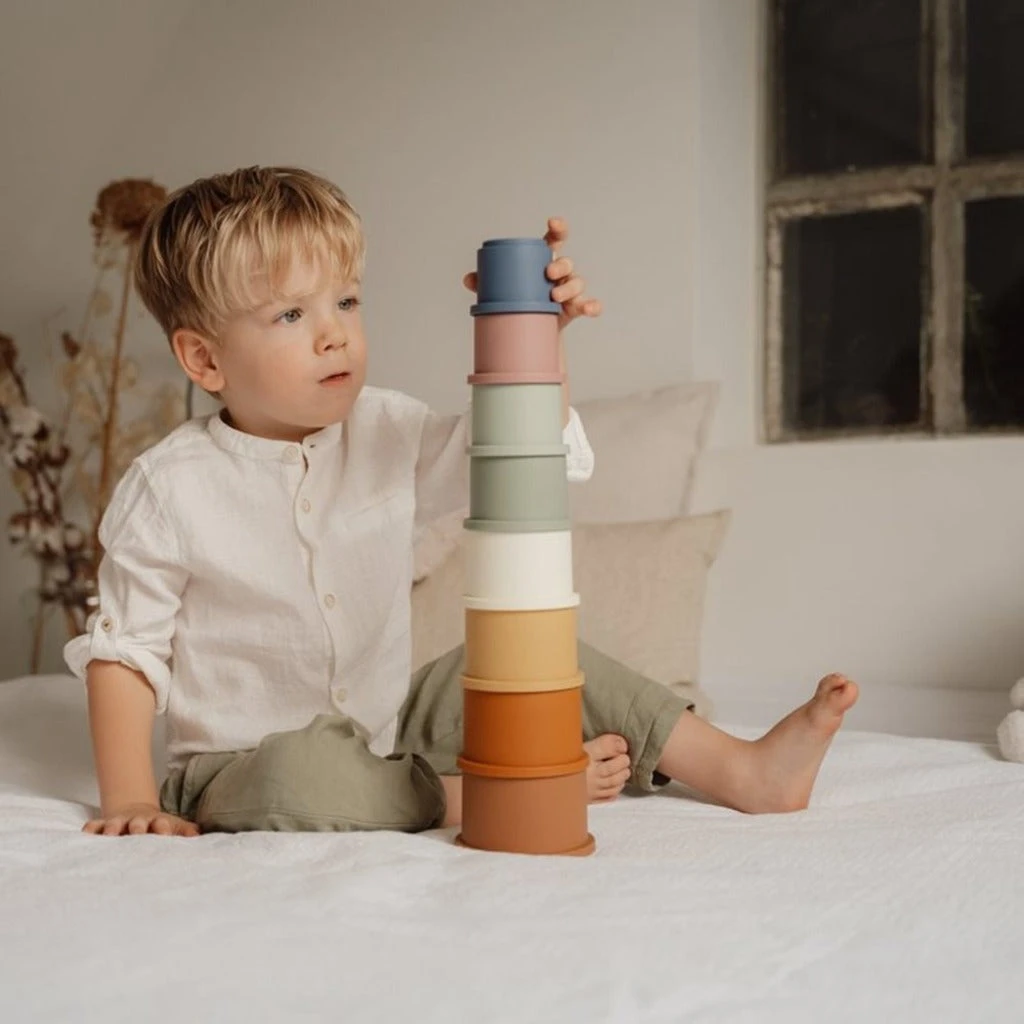 1,2,3 how high will the tower be?! This set of cups challenges your toddler to stack them one on top of the other. How great the joy will be when the tower is completed!