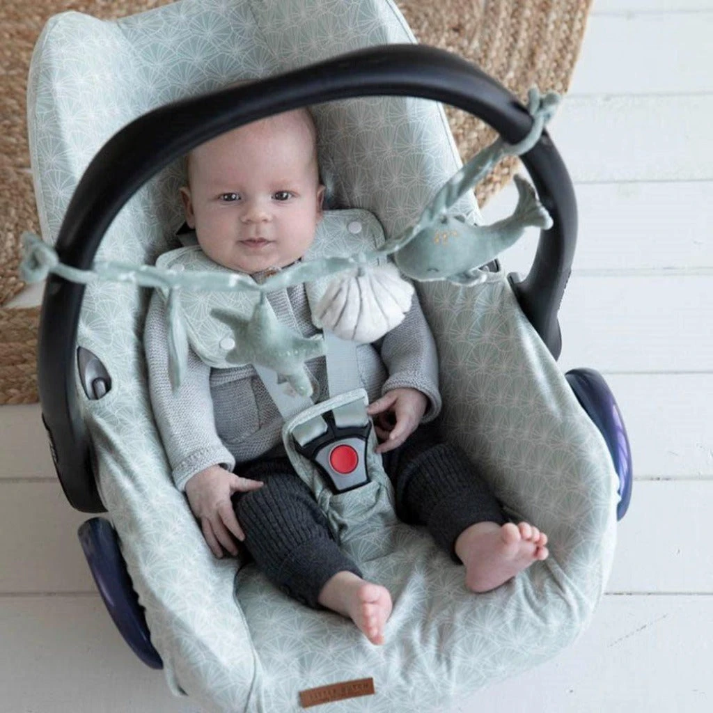 This stroller toy chain with Little Goose and his friends is easy to attach to a stroller or a car seat and provides lots of fun and entertainment on the road thanks to the rattle, the mirror and the squeaky and crinkly toys.
