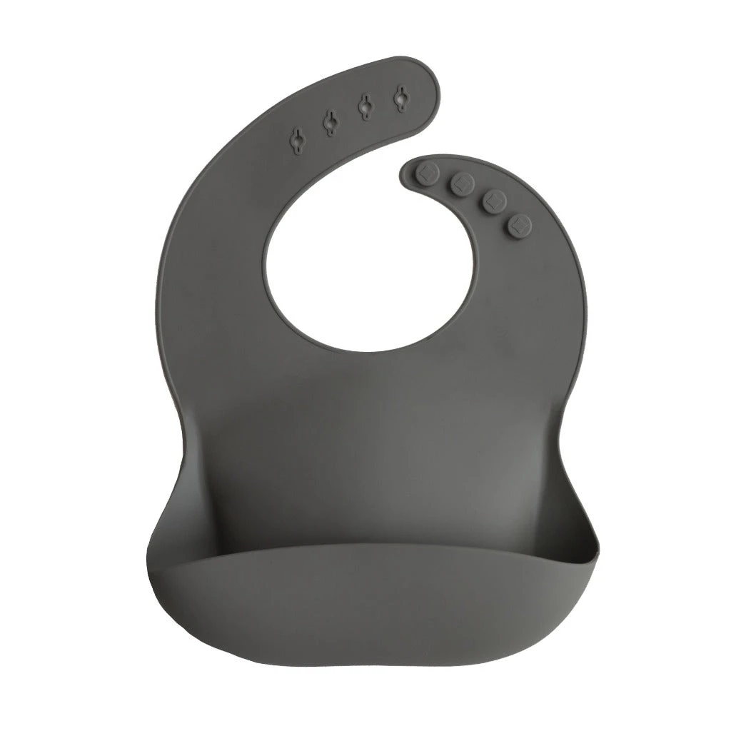 The Mushie Silicone Baby Bib is made from 100% food-grade silicone and has built-in neck fasteners for an ultra-comfy and secure fit.