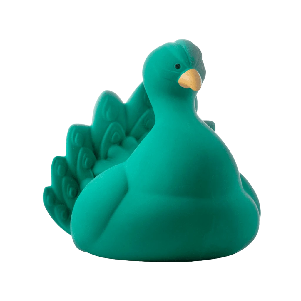 The beautiful and graceful peacock is now a stunning toy for sensory play, chewing- and bath time.