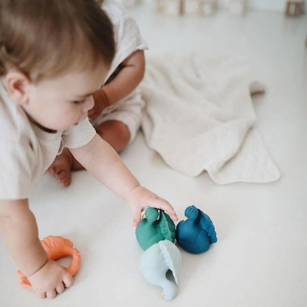 The Natruba peacock is easy to grip for small hands with different surfaces to encourage sensory play and the soft natural rubber easily satisfies all stages of sore gums. Teething and bath time just got so beautiful!