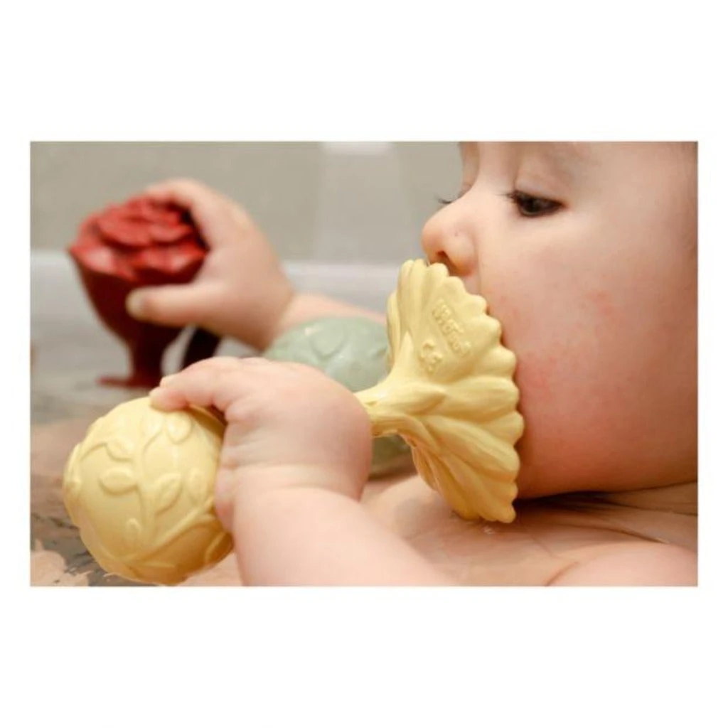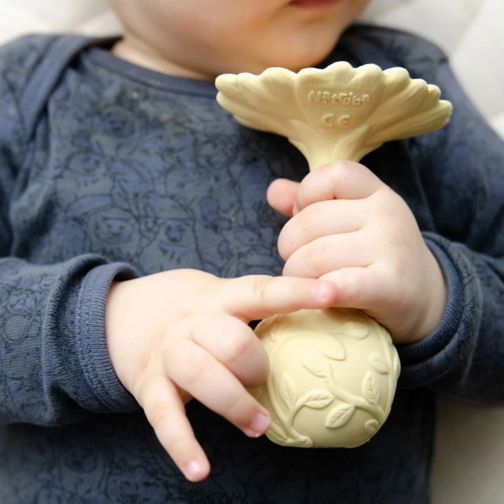 Your little one is now able to chew away on the elegant Natruba flower rattle collection.