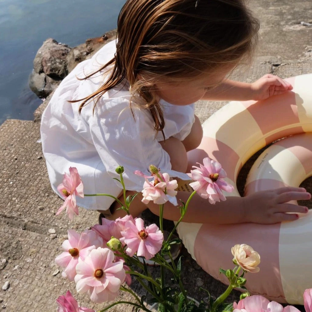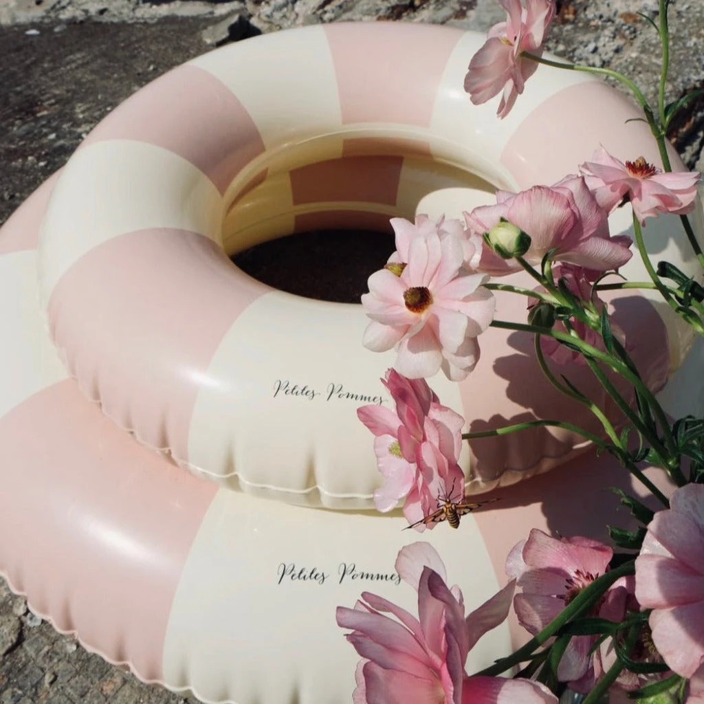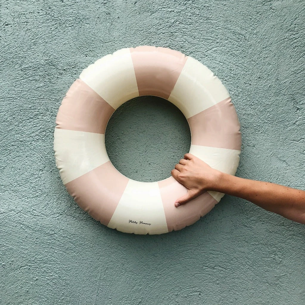 The Petites Pommes swim ring is a reborn childhood classic – made with the attention to detail we have strived to make it last for seasons. Our characteristic striped floats come in a range of beautiful colours to complete any summer look!