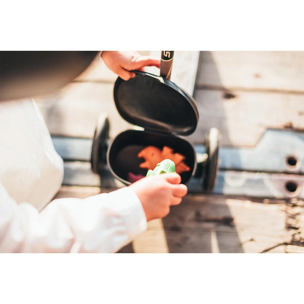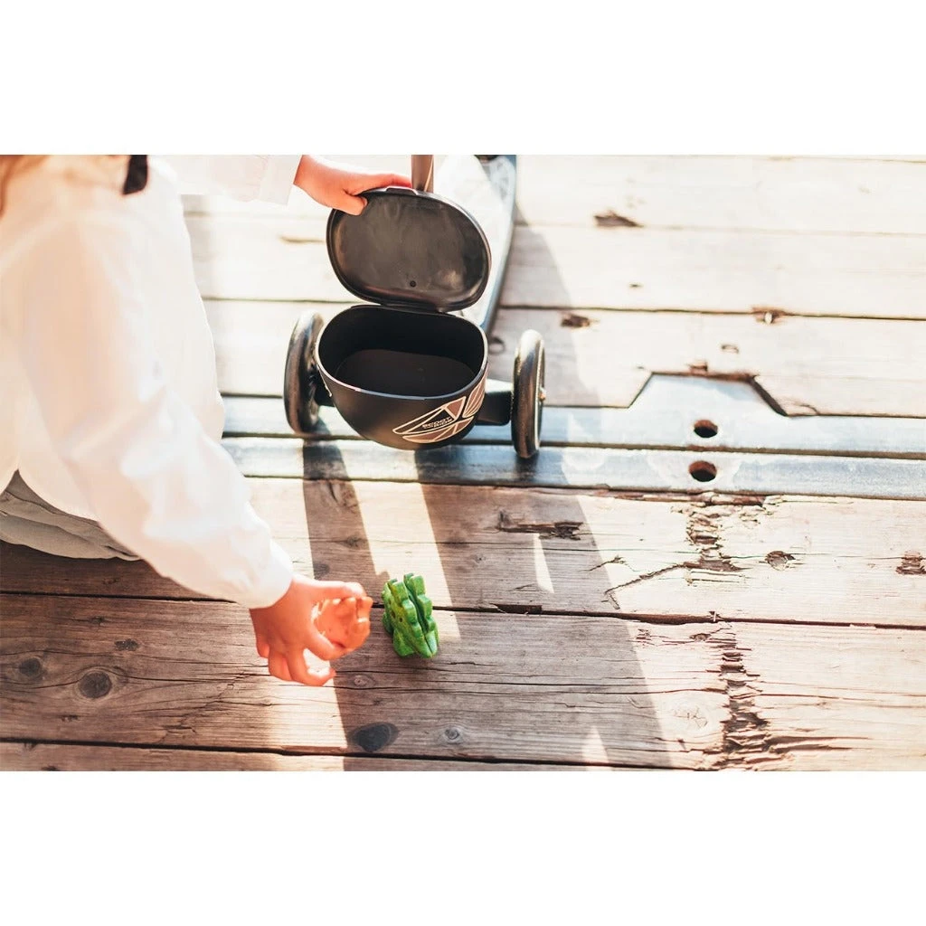 It is easy to drive, easy to use – intuitively and moreover, it perfectly fits the needs of tots, both motor and emotional – because it is equipped with a unique container with a flap for transporting beloved toys, snacks or stuffed animals.