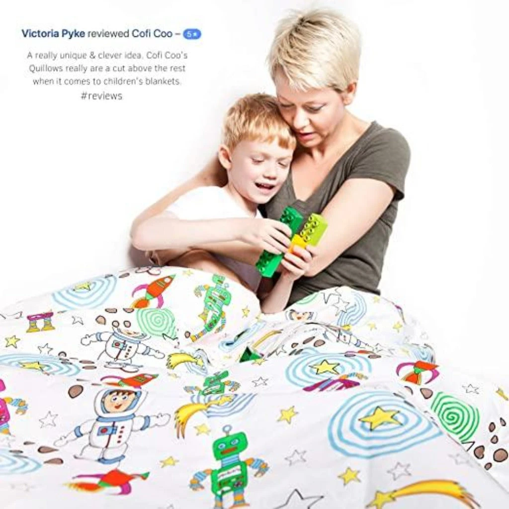 Perhaps you intend to keep your kids warm while asleep or use it as a pillow; our Quillows offer the right solution. Whether out camping in the woods with your kids or snuggling up in the car, our products serve as a beautiful warm blanket or as a cosy pillow that your kid will hug to their dreams.